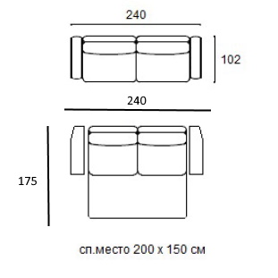 Каркас дивана изготовлен из металла и МДФ. Наполнитель подлокотников и царги — эластичный ППУ плотностью 25 и 22 кг/м³, дополнительно обернутый холлотеком плотностью 100 г/м².