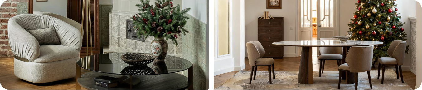 Выбирая модели из наличия, вы сможете обновить интерьер к праздникам и встретить Новый год в изысканном пространстве.